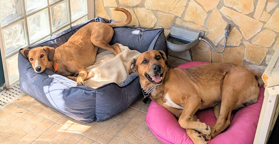 While Romeo grew up in the country without a home and without training, he is a true gentleman. He adores people, seeks cuddles, enjoys exploring while on lead, jumps willingly into cars, and conducts himself appropriately in buildings and public areas. Romeo also is literally a model dog, demonstrating to younger and less-confident pups how to interact with humans and other dogs, as well as how to properly walk on a leash and to be adaptable in new surroundings.